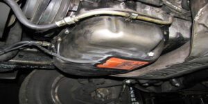 bottom section of the internal combustion engine, serving as the reservoir for its system's lubrication