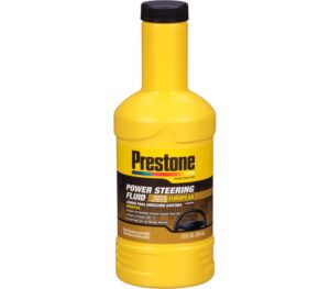 fluid pressurized by a small hydraulic pump powered by the engine that makes turning the vehicle easier; increases the ability of the steering mechanism to direct the tires