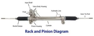 used for the steering system; converts the rotational movement of the steering wheel into the linear left-right movement of the wheels